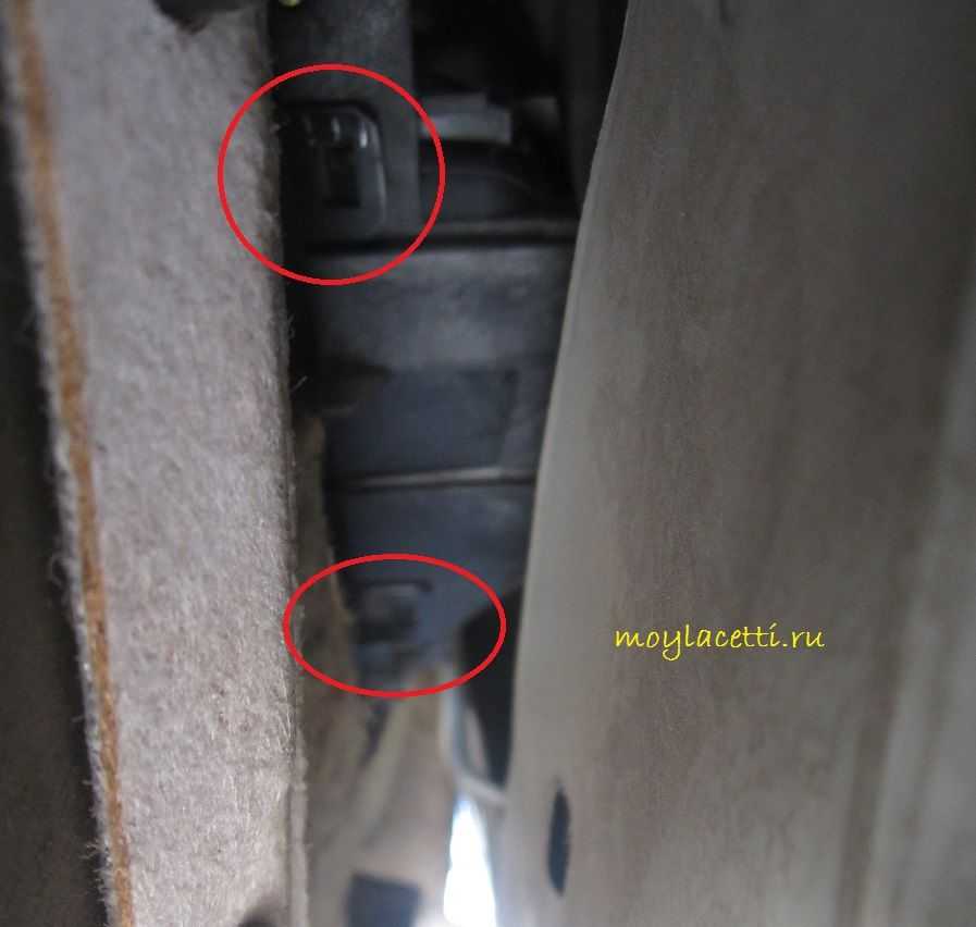 Облицовка Лачетти крепится на пять внутренних клипс. Прежде чем устанавливать обшивку, производят ревизию крепежных деталей.