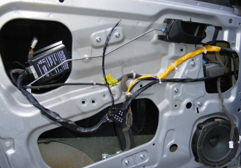 - Если стеклоподъемник электрический, то необходимо присоединить к механизму подъема стекла колодку проводов.