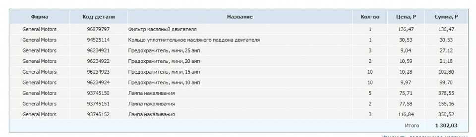 Вот собственно и заказ, так как должна была быть плановая замена масла, прикупил еще и остальное