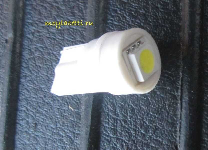 Лампа бокового указателя поворота Chevrolet Lacetti: лампа накаливания с цоколем WY5W ; мощность 5 ватт; безцокольная лампа, небольшого размера.