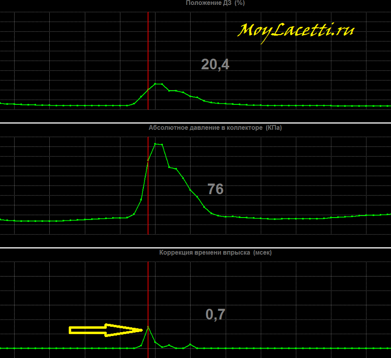 Длительность импульса впрыска — должна составлять 2.3 — 3 мсек. на холостом ходу прогретого двигателя без нагрузки (выключены потребители и кондиционер).