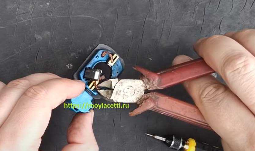Важно! Изношенные щетки извлекайте вперед. То есть, не отгибайте заднюю часть щеткодержателя. В 99% случаев Вы ее отломаете
