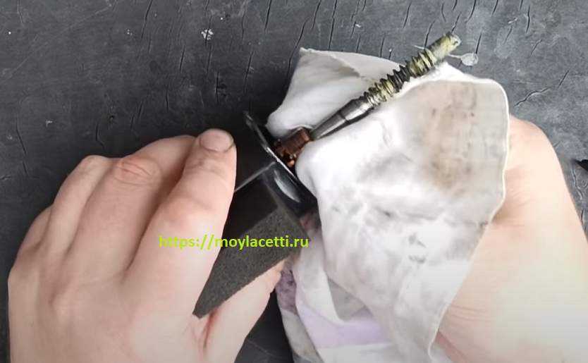 Ее можно исправить следующим образом: снять мотор, вытащить ротор. Затем необходимо почистить нагар с помощью наждачной бумаги.