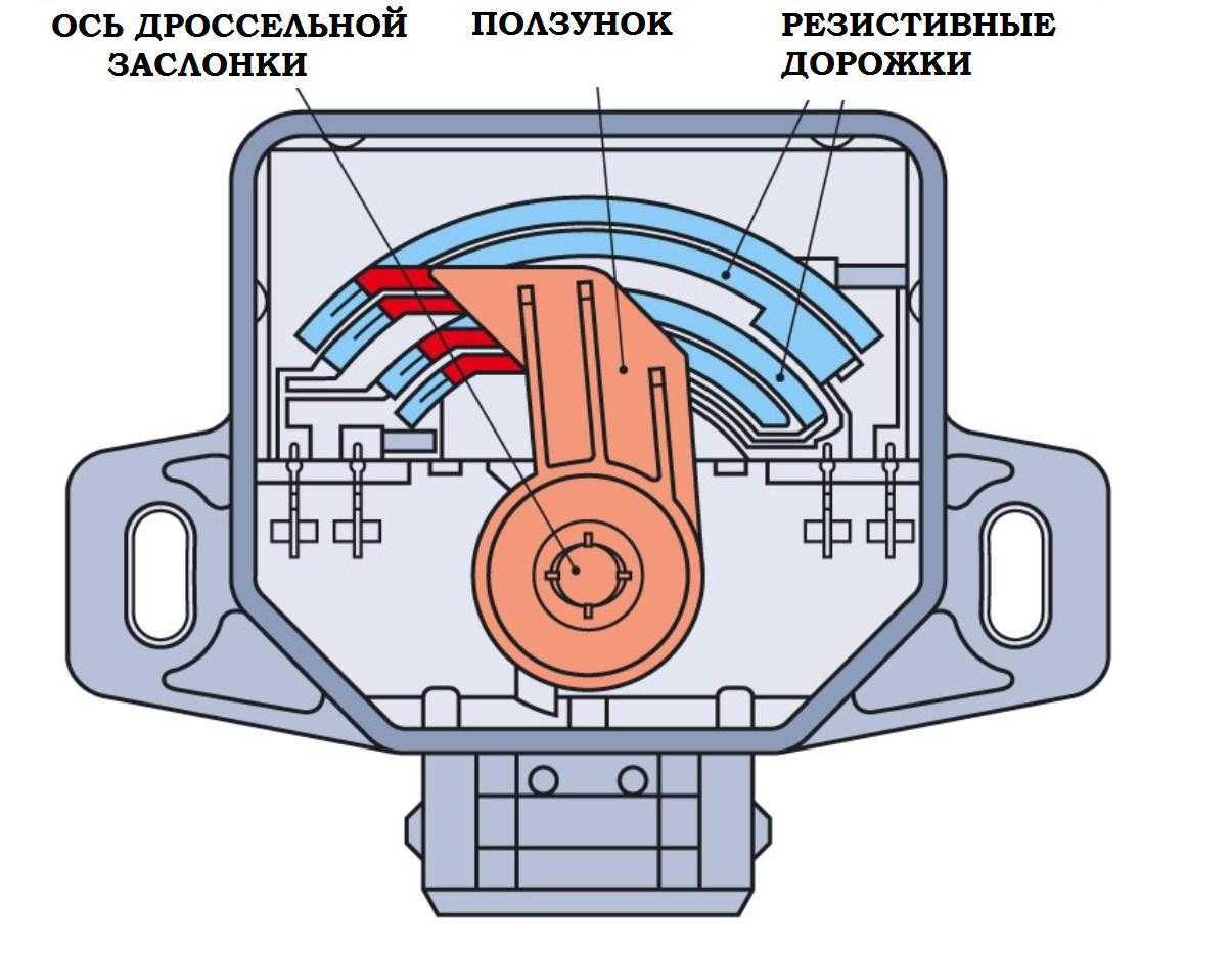 - преобразует значение угла положения дроссельной заслонки в электрический сигнал, сила которого меняется в зависимости от степени открытия заслонки.