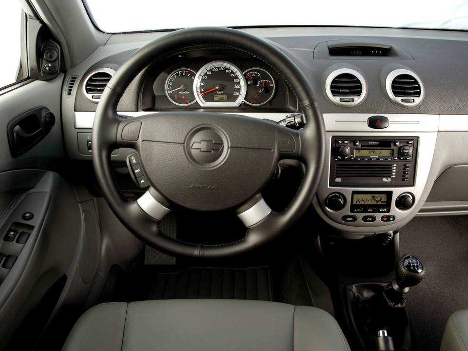 Как свидетельствуют отзывы о Chevrolet Lacetti, узнаваемым отличием данного авто является оригинальная кожаная обшивка руля и рычага включения передач. Для обивки кресел и дверных отсеков используется велюр светлого цвета. Это визуально увеличивает внутренне пространство машины. За определенную доплату доступна отделка кресел кожей.