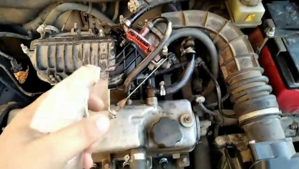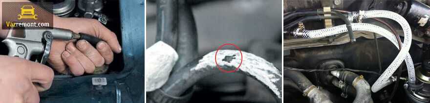 Для того, чтобы найти место подсоса, нужно завести мотор автомобиля и на холостом ходу начать опрыскивать все возможные узлы, стыки, заглушки и шланги, которые относятся к коллектору и могут быть причиной проникновения воздуха.