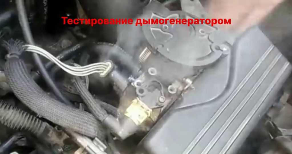 Самый надежный способ поиска места подсоса воздуха в двигателе – проверка дымогенератором. Для проведения диагностики необходимо заглушить гофру таким же способом, как и при работе с компрессором. После этого дымогенератор присоединяется к одному из патрубков или ответвлений впускного коллектора и через него прокачивается воздух. Иногда используется дополнительное приспособление для заглушки гофры и прокачки воздуха через нее. Нужно давление нагнетается при помощи компрессора или обычного насоса, через вставленный ниппель автомобильного колеса. Дым, поступая во впускную систему под давлением будет выходить из мест, где она имеет повреждения. В результате место подсоса воздуха можно найти очень быстро и точно по выходящим дымным струйкам.