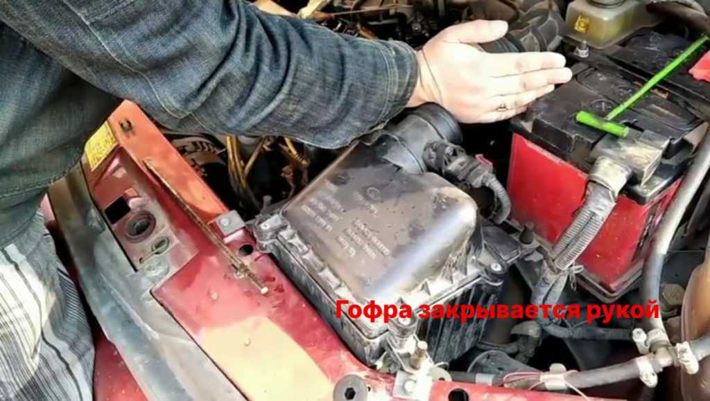 Для определения подсоса воздуха в моторе данным способом понадобится только ладонь. Нужно ослабить хомут, фиксирующий патрубок, отходящий от воздушного фильтра и завести автомобиль. После этого плотно закрыть патрубок ладонью. В результате гофра сожмется, а мотор, вероятно, заглохнет. В этот момент можно услышать, где засасывается воздух. Для уверенности желательно сделать несколько таких тестов. Они позволяют определить утечку воздуха, если она уже довольно серьезная. В случае небольшой утечки диагностировать проблему на слух не удастся.
