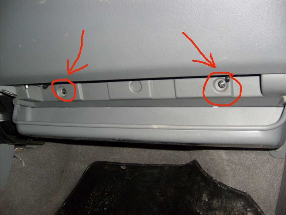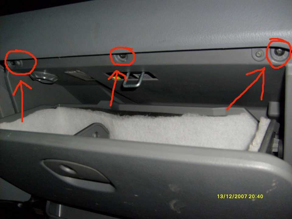 1. СНИМАЕМ БАРАДЧОК: 3 самореза сверху (при открытом бардачке) + 2 самореза снизу. Ничего сложного.