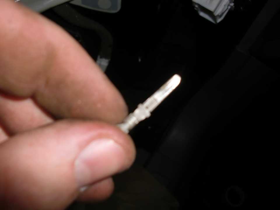 В коннекторе, приходящий провод уже есть с завода. Он оранжевого цвета, его и проверяем тестором. На фото ниже видно как удобно разъединить колодку, а точнее нужно просто ослабить болты крепления двери.
