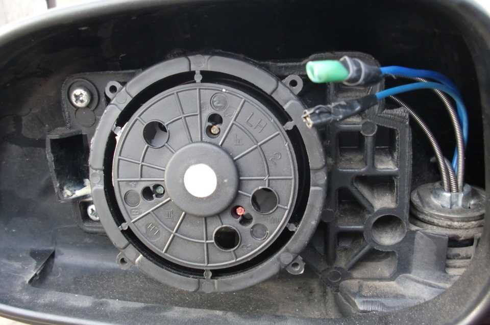 Потом снимаем зеркало. Хотел без съёма накладок, но шурупы прикисли от реагентов. После демонтажа самого зеркала, снимаем внутренний кожух и видим где тянуть провода.