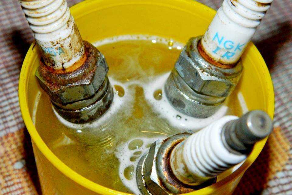 - Специальная химия. Детали на ночь замачивают в очистителе карбюратора или инжектора. В этой химии нагар хорошо откисает, а электрод остается нетронутым.