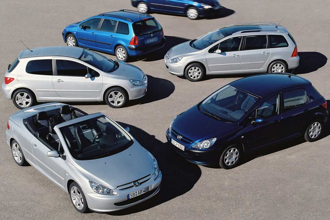 В 2003 г. сформировалась полная гамма вариантов Peugeot 307 (сверху вниз): Универсал Break, лёгкий минивэн SW, 3- и 5-дверные хэтчбеки, купе-кабриолет CC