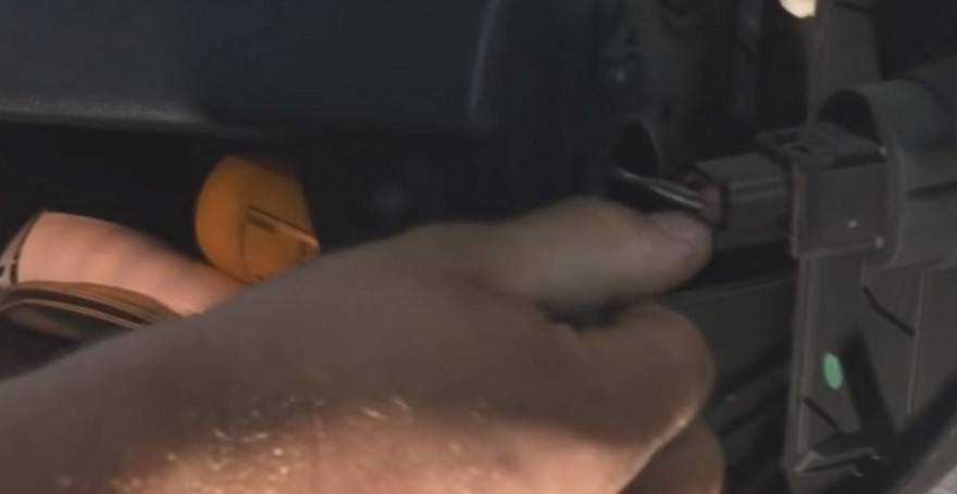 - Сдергиваем бардачок на себя, немного выдвигаем и отключаем разъем питания на лампу подсветки.