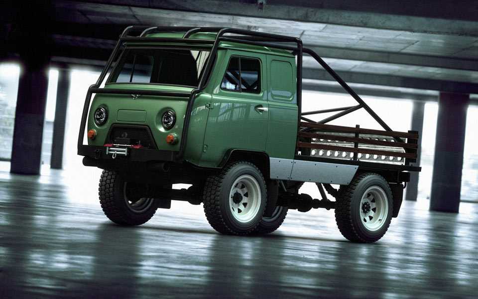 - Платформа из досок и 2-местная кабина являются классической «визиткой» Уаз 330394;