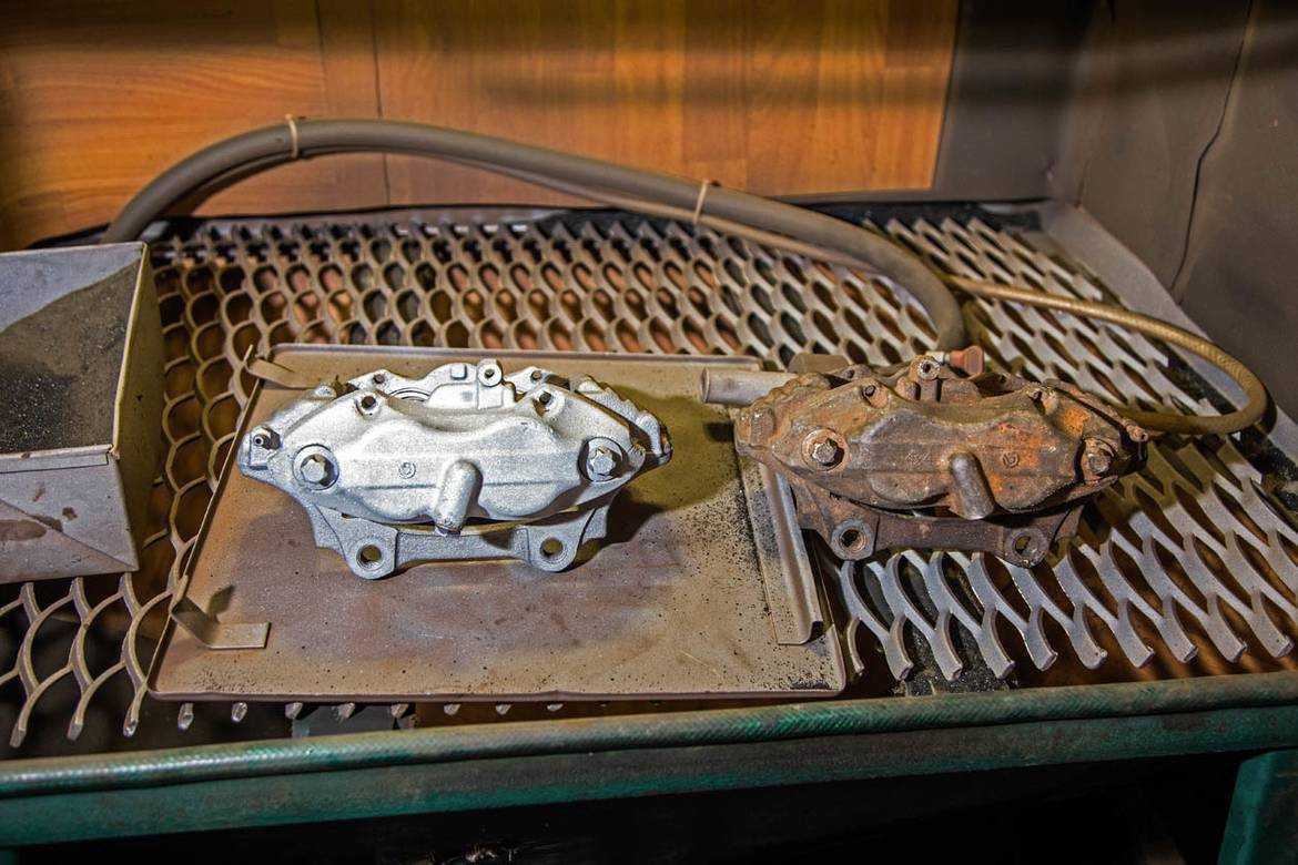 В первую очередь суппорт разбирается и очищается. Разборка — не всегда простая операция, а тормозные механизмы со встроенным стояночным тормозом могут потребовать специального инструмента и навыков. Очистка в специализированной мастерской делается с помощью дробеструйной обработки, но при единичных работах может применяться химический способ очистки или механическая очистка щетками / насадками для дрели.