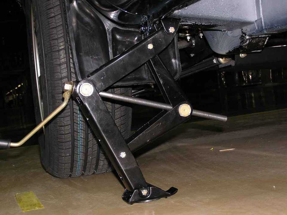 - Поднимите заднюю часть машины при помощи домкрата и снимите колесо со стороны, где планируется замена.