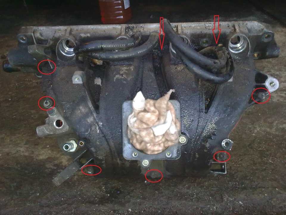 Ставим назад впускной коллектор, не забываем поменять прокладки на новые