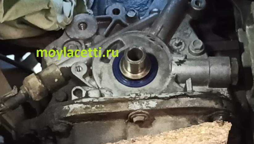 Заменить передний сальник куда легче, чем задний. Достаточно скинуть клапанную крышку, ремень ГРМ тоже снять, и зафиксировать шкив от проворота монтировкой. Также демонтируется шкив с хвостовика распредвала и шпонка, расположенная за ним. Затем сальник выковыривается отвёрткой или пинцетом.