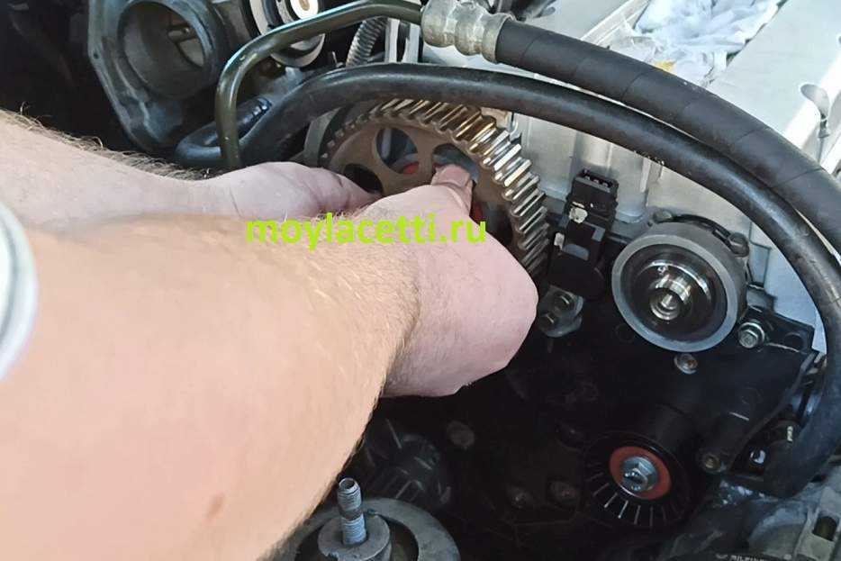 Особое внимание уделяется натяжению ведущей ветви. Она должна проводится с учётом совпадения меток на шестернях распредвалов и подшипниках