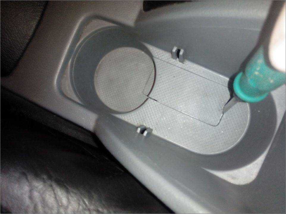 - Снимаем держатель стакана на центральном тоннеле справа от водителя.
