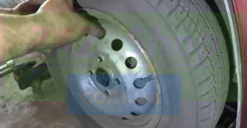 - Срываем колёсные болты, затем поднимаем кузов домкратом, снимаем колесо.