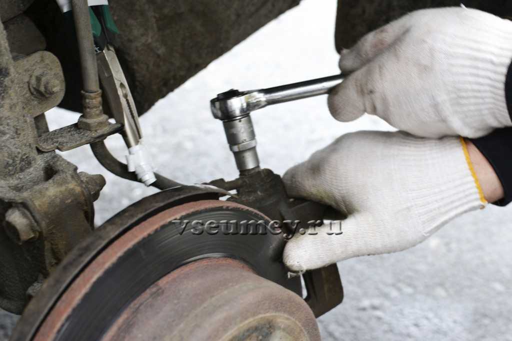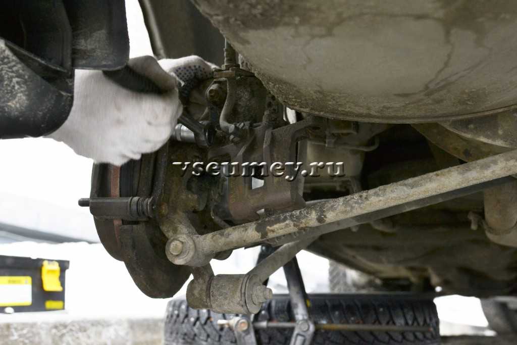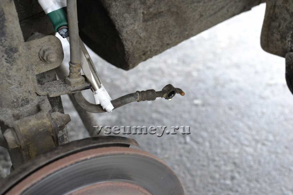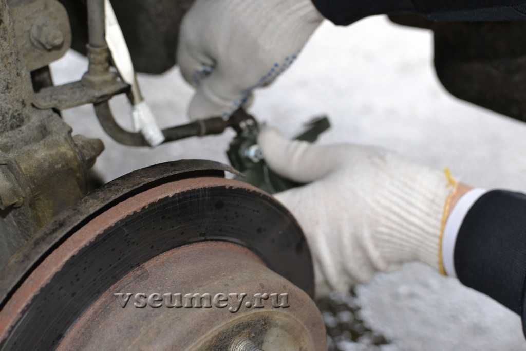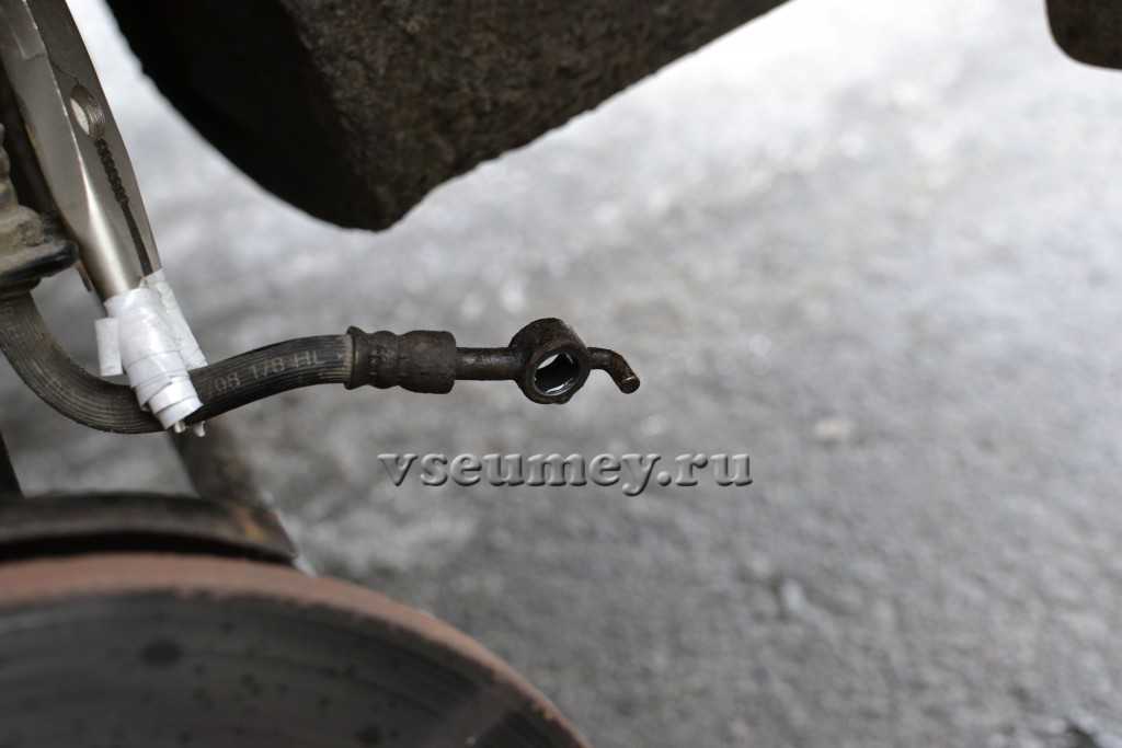 Возможны другие варианты как можно это сделать. Откручиваем тормозной шланг.