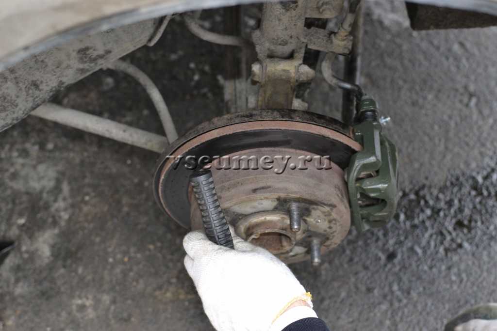 Поэтому для начала отрегулируем диаметр окружности колодок. Правильный параметр — 167,6–167,8 мм. Измеряют диаметр штангенциркулем как можно ближе к центру ступицы при снятом тормозном диске. Как это сделать своими руками, разберёмся прямо сейчас.
