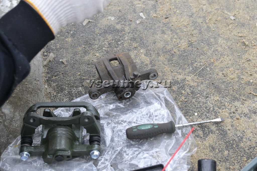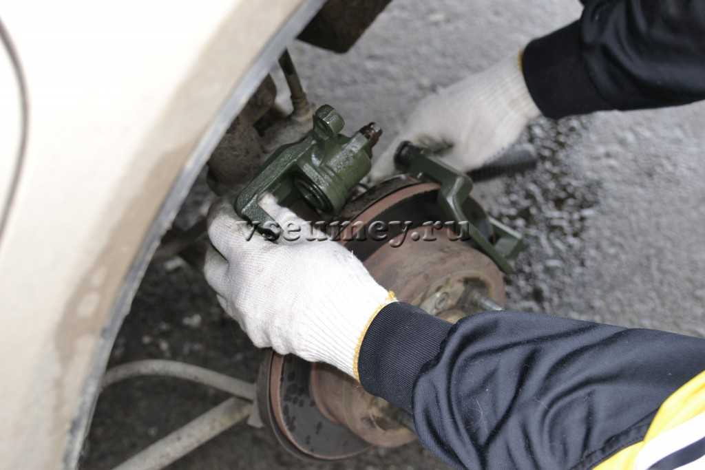 Аналогично заменяем колодки на другой стороне автомобиля.